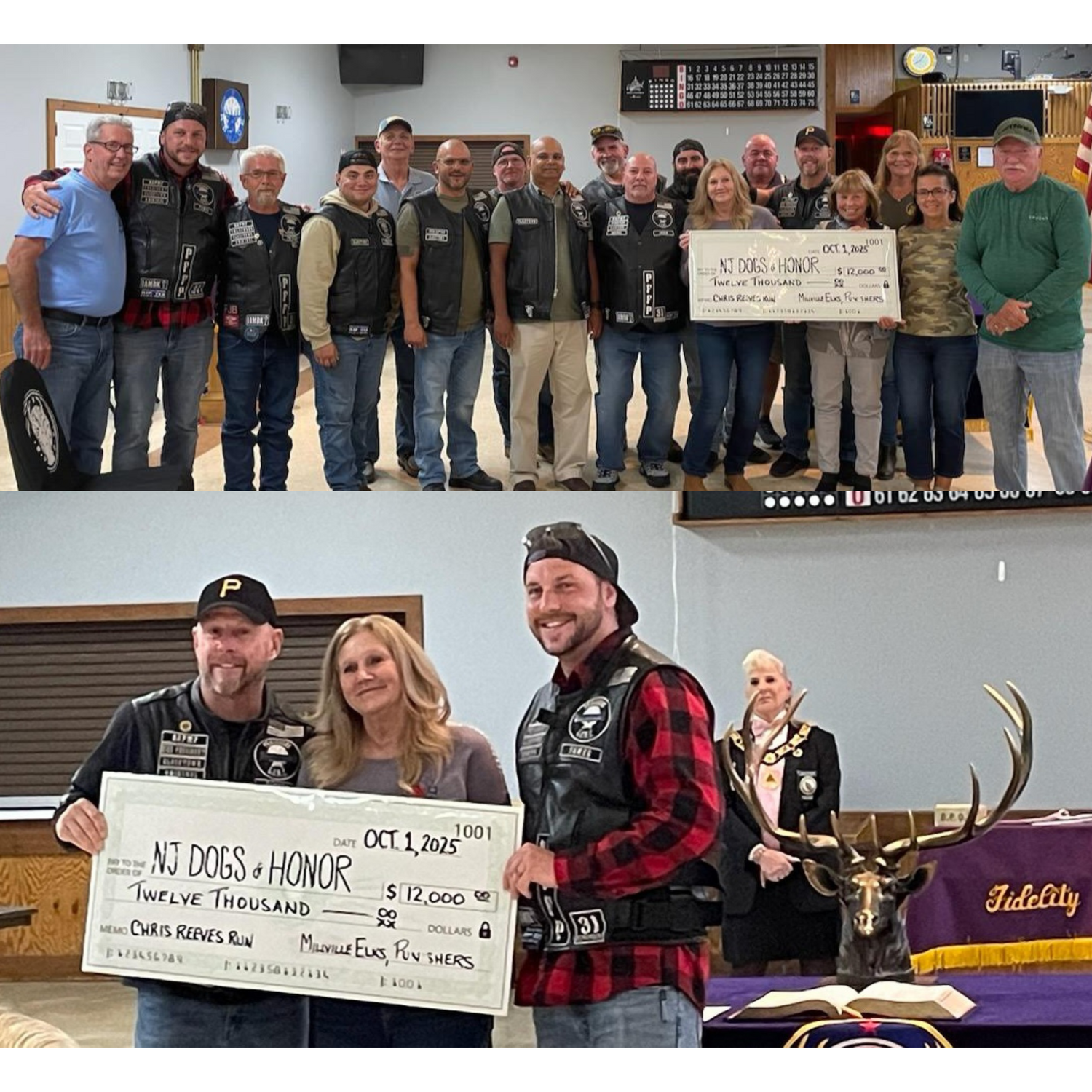 Huge thanks to Millville Elks Lodge 580 and the Punishers Glasstown Chapter Motorcycle Club for their generous donation to NJ Dogs of Honor, raised in memory of Marine Veteran & Millville Officer Chris Reeves.